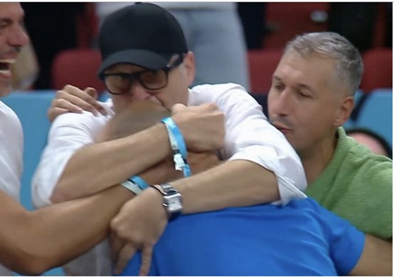 Ο Βασίλης Σπανούλης πήγε προς το μέρος όπου βρισκόταν η παλιά «φρουρά» της Εθνικής και χάθηκε στις αγκαλιές των Θοδωρή Παπαλουκά, Δημήτρη Διαμαντίδη και Κώστα Τσαρτσαρή.