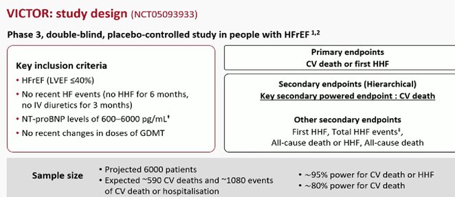 Butler J, McMullan CJ, Anstrom KJ, et al. Vericiguat in patients with chronic heart failure and reduced ejection fraction (VICTOR): a double-blind, placebo-controlled, randomised, phase 3 trialLancet. 2025;Epub ahead of print.