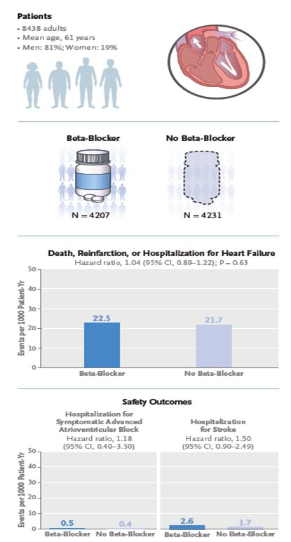 Munkhaugen J, Kristensen AMD, Halvorsen S, et al. Beta-blockers after myocardial infarction without heart failure. N Engl J Med. 2025;Epub ahead of print.