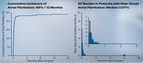 Μελέτη με συνεχή καταγραφή με τα την επέμβαση σε έδειξε ότι παρ ότι σε μισούς ασθενείς καταγράφηκε ΚΜ στον 1 χρόνο παρακολούθησης(οι περισσότερες τη πρώτη εβδομάδα) το φορτίο ήταν πολύ χαμηλό( διάμεση διάρκεια 6 Min, και οι ερευνητές συνιστούν αντιπηκτική για 30 ημέρες