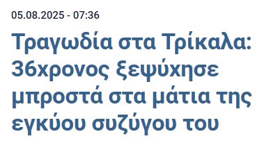 Παραπονιόταν για αδυναμία και είχε ζητήσει ιατρική βοήθεια. προγραμματισθηκε για CTA. Θα το ξανα τονίσουμε. Η μικρή ηλικία να μη αποτελεί λόγο για μη υποψία ΟΣΣ. Κ αι εδώ το ΕΚΑΒ όπως και στα παραπάνω έφτασε αλλά δεν πρόφτασε.