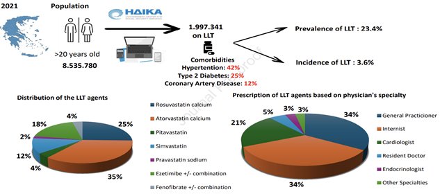 Από τα υπόλοιπα ο επιπολασμός-prevalence ή πόσοι έπαιρναν στεατίνη το 2021) 23.4% και η επίπτωση(incidence) πόσοι πρώτο άρχισαν το 2021 3.6%.