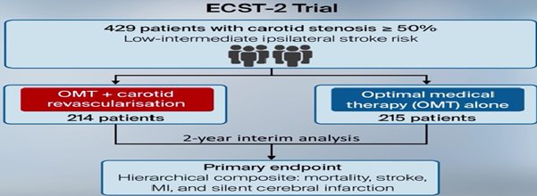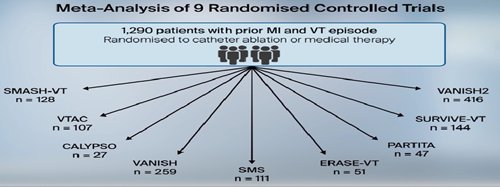 Τhe results support treating patients with asymptomatic and low or intermediate risk symptomatic carotid stenosis with OMT alone until further data from the 5-year analysis of ECST-2 and other trials become available. Donners, SJA ∙ van Velzen, TJ ∙ Cheng, SF ∙ et al. Optimised medical therapy alone vs optimised medical therapy plus revascularisation for asymptomatic or low-to-intermediate risk symptomatic carotid stenosis. Lancet Neurol. 2025; 24:389-399 Mετα ανάλυση 9 μελετών που συνέκριναν τη κατάλυση κοιλιακών ταχυκαρδιών μετα από ΕΜ σε σύγκριση με τη φαρμακευτική αγωγή δεν έδειξε διαφορά στη θνητότητα αλλά μόνο στην υποτροπή και τις νοσηλείες . Reddy RK et al. JACC Clin Electrophys 2025 in press