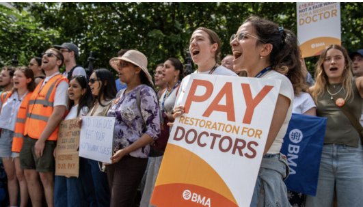 Βρετανία: Γιατροί ξεκινούν πενθήμερη απεργία για τις αμοιβές – Η κυβέρνηση λέει ότι θα είναι επιβλαβής για τους ασθενείς   Ένα από τα συνθήματα: Με το πάθος δεν πληρώνονται οι λογαριασμοί