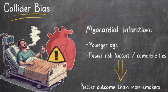 H collider bias είναι ένα συχνό πρόβλημα που παρατηρείται σε μελέτες παρατήρηση. Οι αναλυτές των μελετών πρέπει να είναι ενήμεροι στις περιπτώσεις που δύο μεταβλητές σχετίζονται τοσο με την έκθεση όσο και με την έκβαση.