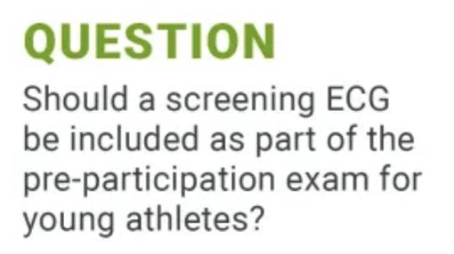 Το αν πρέπει να κάνουμε  ΗΚΓ στους αθλητές  στα πλαίσια  προ συμπτωματικού ελέγχου συνεχίζει να αποτελεί θέμα διεθνούς  αντιπαράθεσης.