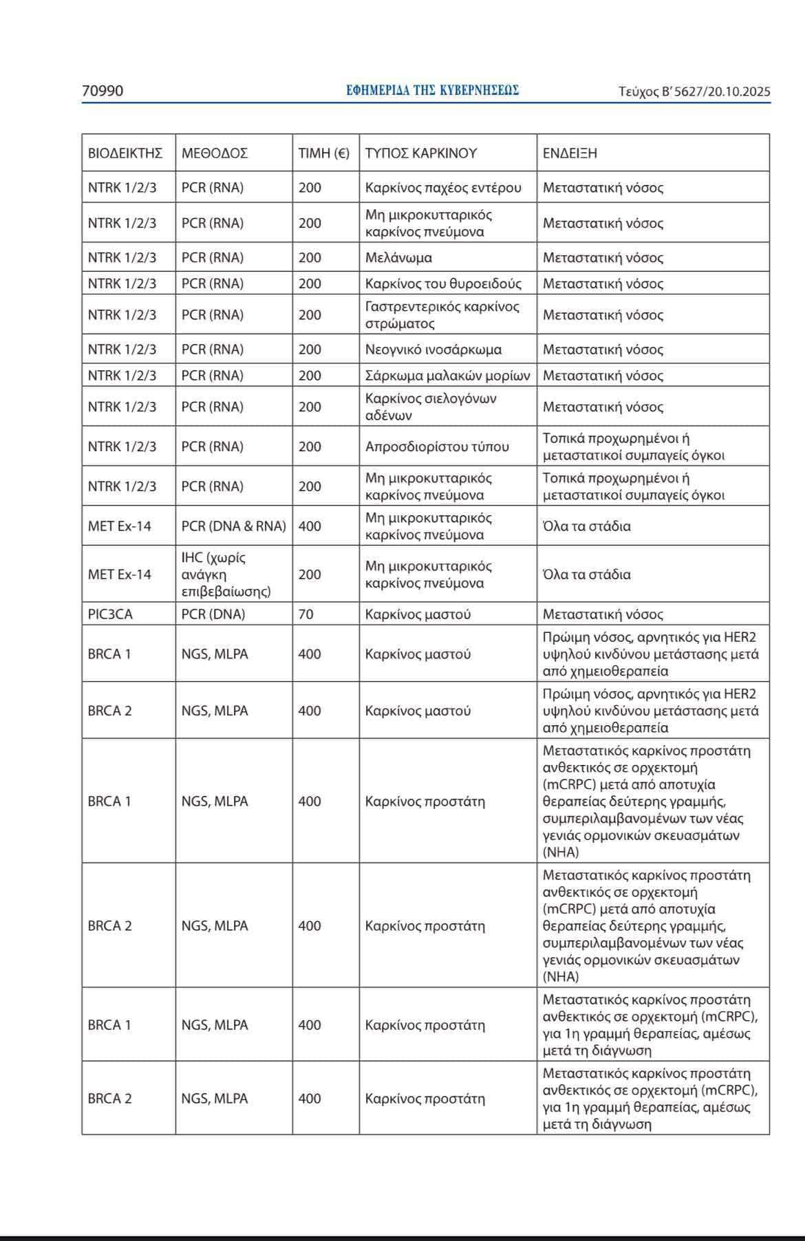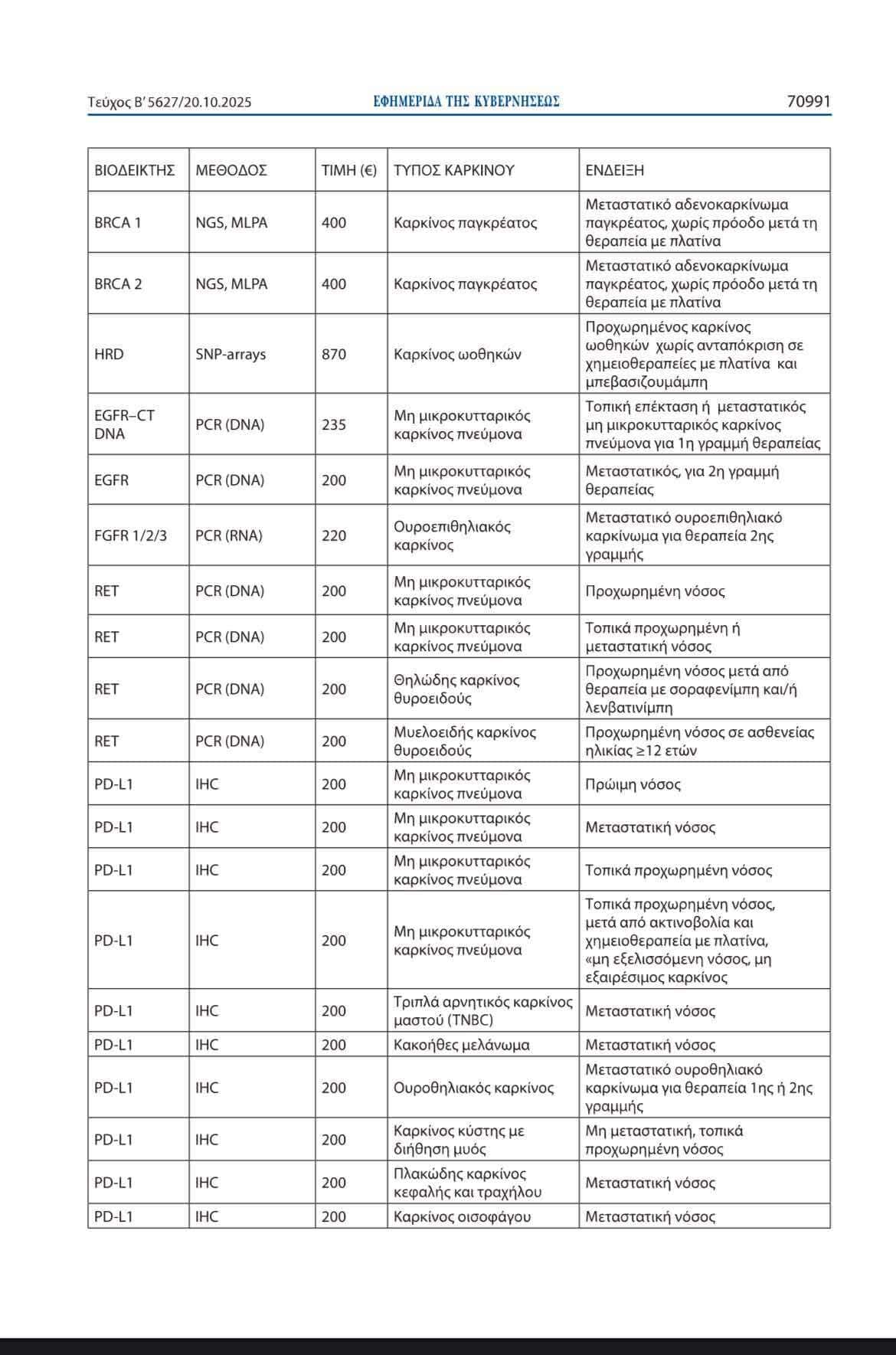 Δημοσιεύθηκε σε ΦΕΚ η τροποποίηση της υπ’ αρ. 49516/4.6.2014 απόφασης του Υπουργού Υγείας σχετικά με τη συνταγογράφηση και αποζημίωση ογκολογικών φαρμάκων. Η ένταξη των εξετάσεων βιοδεικτών στον μηχανισμό αυτόματης επιστροφής (clawback) δεν επιβαρύνει τον προϋπολογισμό του Υπουργείου Υγείας ούτε επηρεάζει το δημοσιονομικό αποτέλεσμα του 2025.