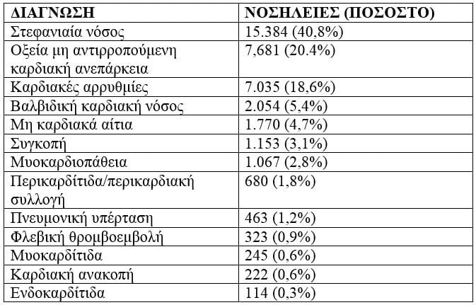 Η πρώτη πανελλήνια μελέτη με πραγματικά δεδομένα από 37.741 νοσηλείες σε μια περίοδο 12 ετών. Κύριες διαγνώσεις, προηγούμενο ιστορικό, ιατρική αντιμετώπιση, διαφορές ανά φύλο και ηλικία