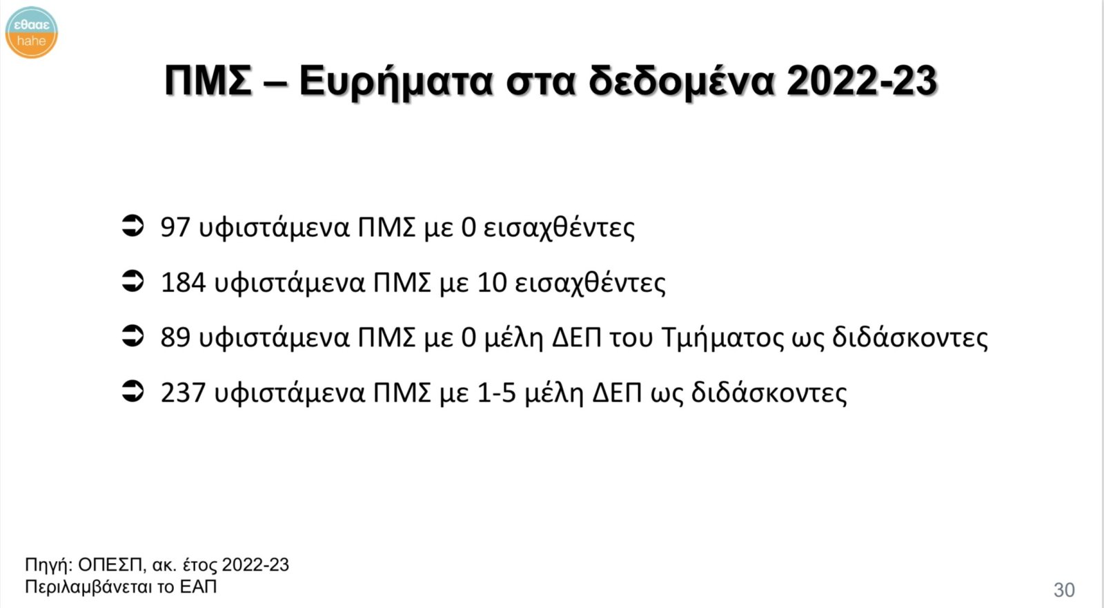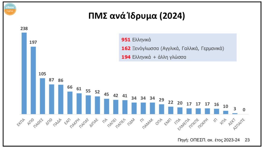 • 89 υφιστάμενα ΠΜΣ με 0 μέλη ΔΕΠ του Τμήματος ως διδάσκοντες