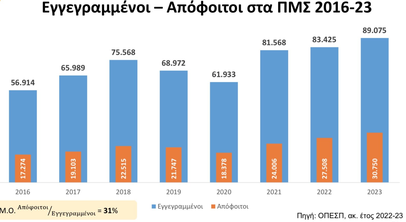 Το 2016 λειτουργούσαν  735  ΠΜΣ  με 17.274 εγγεγραμμένους ενώ  σήμερα άγγιξαν τα 1307  με 30.750 φοιτητές.