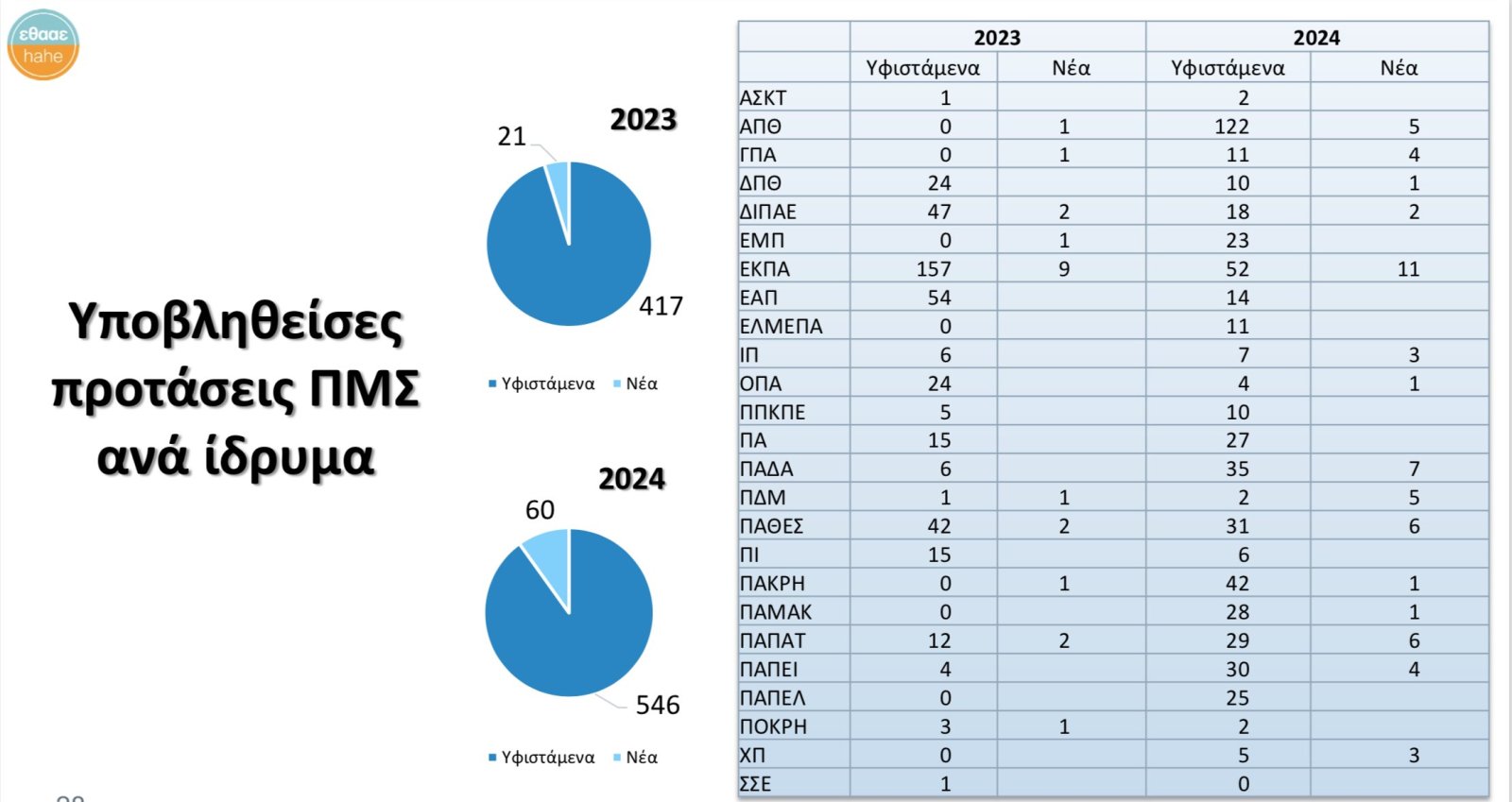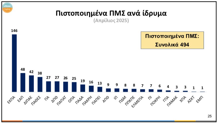 Από τις Πιστοποιήσεις που έκανε η ΕΘΑΑΕ, προέκυψαν τα ακόλουθα ευρήματα: