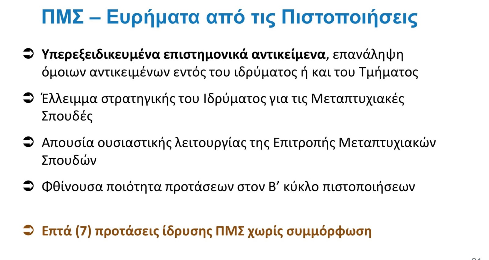 • Επτά (7) προτάσεις ίδρυσης ΠΜΣ χωρίς συμμόρφωση.