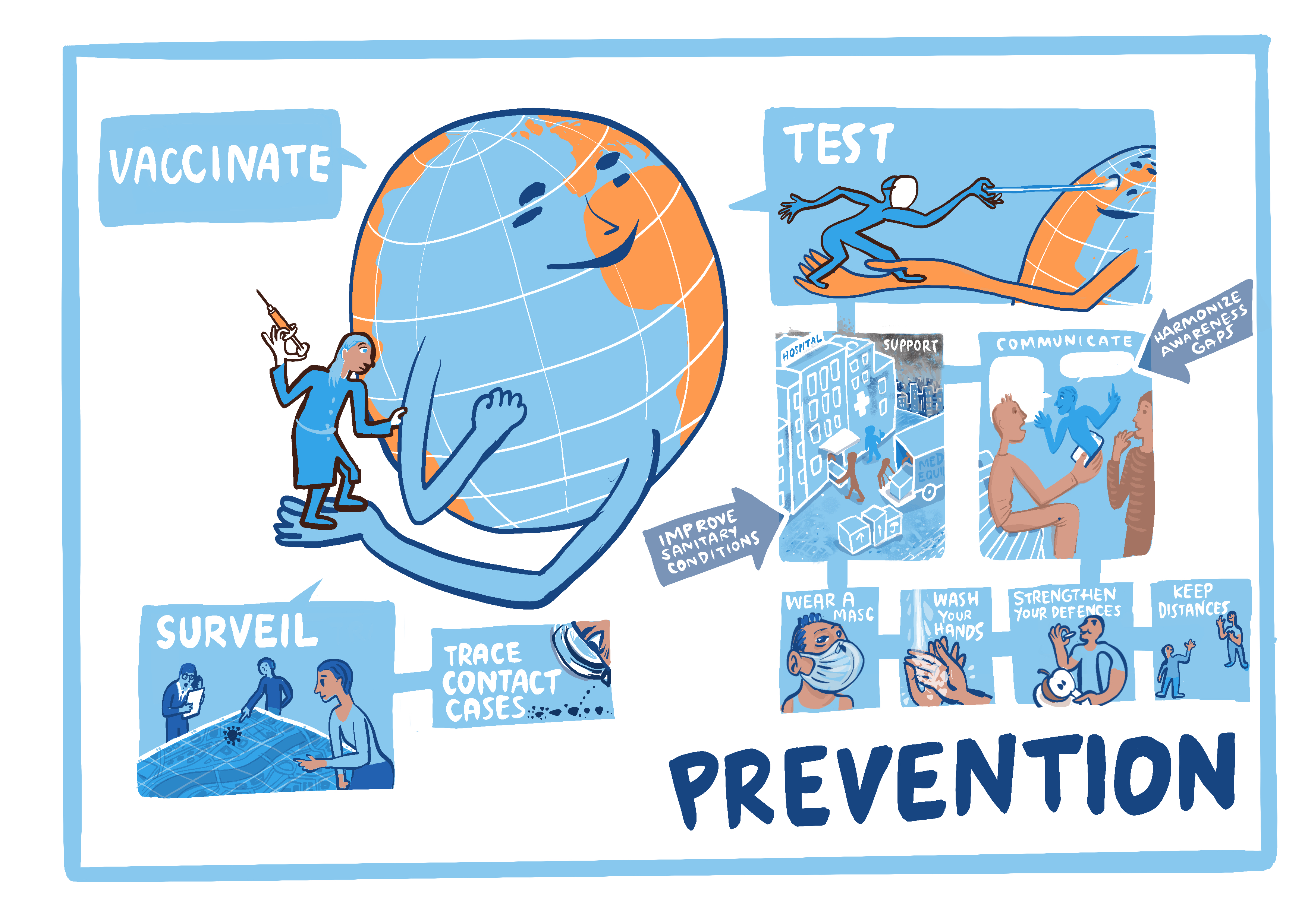Η στρατηγική PDA από τα αρχικά των λέξεων prevention (πρόληψη), detection (ανίχνευση) και anticipation (πρόβλεψη) πρέπει ενσωματωθεί στις εθνικές πολιτικές με στόχο να υποστηρίζει και να επεκτείνει τα Συστήματα Υγείας αξιοποιώντας ψηφιακές λύσεις (π.χ. τηλεϊατρική, ηλεκτρονική υγεία, τεχνητή νοημοσύνη και τεχνολογίες μηχανικής μάθησης) για την διατήρηση της υγείας των πολιτών σε τοπικό και παγκόσμιο επίπεδο.